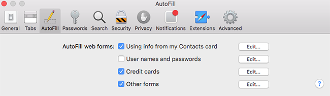 2. Navigate to the Autofill section and uncheck User names and passwords