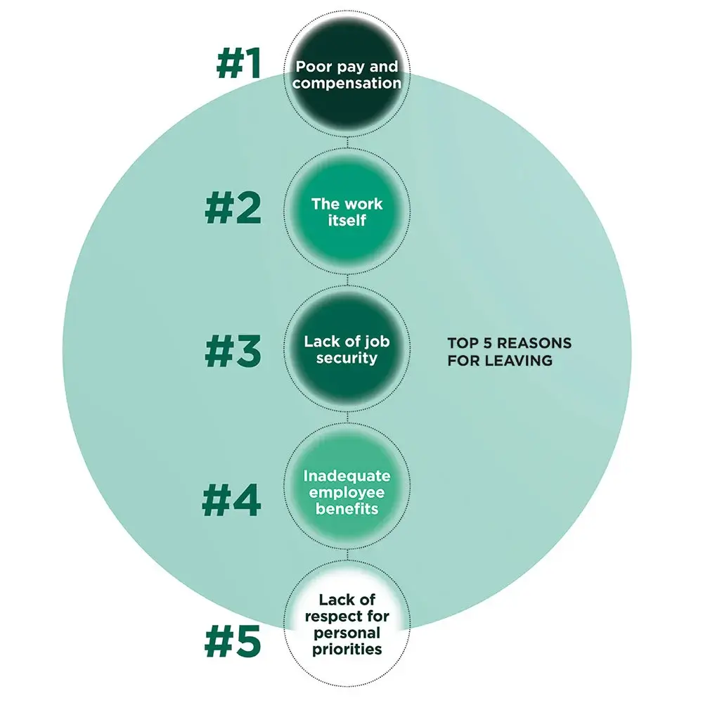 “A paycheck gets employees in the door. Job security, meaningful work, and respect for personal boundaries keep them from looking for the exit.”