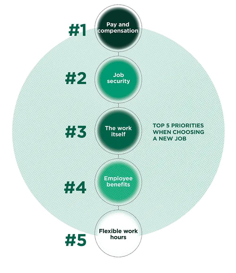 Right now, they also really want job security, rewarding work, better benefits, and more control over their working hours. If you can offer these, they’ll be powerful tools to attract top talent in 2025, even if you struggle to compete on pay.