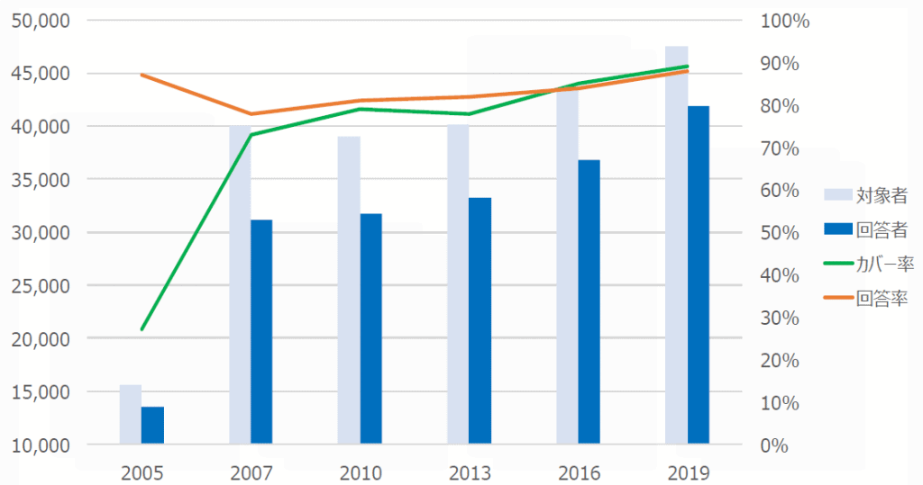 これまでに6回の調査を実施し、調査を重ねるごとに対象者数と回答率が増加