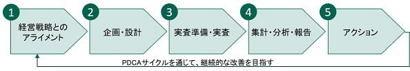 4. 集計・分析・報告:結果データを課題意識の観点から分析。結果を関係者へ報告、共有のうえ、アクションを検討