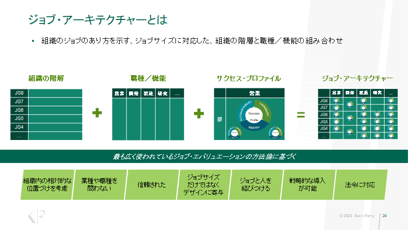 ■HRテックツールKorn Ferry「ジョブ」&「キャリア」アーキテクチャーここからは佐々木氏が、コーン・フェリーのHRテックツールを用いながら具体的なタレントマネジメントの進め方を解説した。