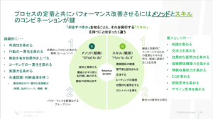 では、大きな意味でのプロセスとはどういうことか。野見山氏は顧客起点のプロセスは、顧客の購買決定プロセスと同期させて設計する必要があると説明する。そして、プロセスの定着と共にパフォーマンスを改善させるにはメソッドとスキルのコンビネーションが鍵だと強調する。