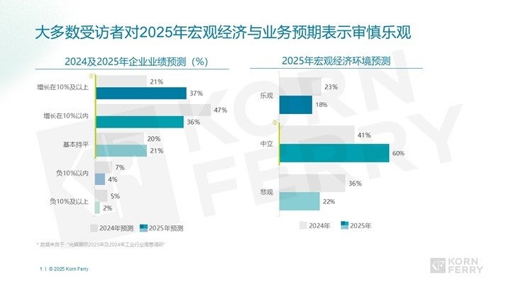 大多数受访者对2025年宏观经济持审慎态度,同时对企业业绩预期信心增强