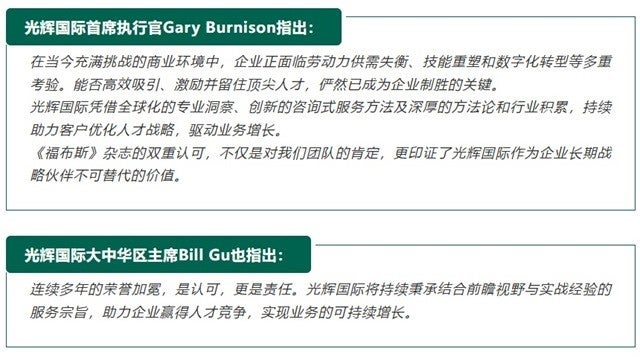光辉国际再获《福布斯》双项殊荣:连续八年蝉联“全美最佳高管搜寻公司”