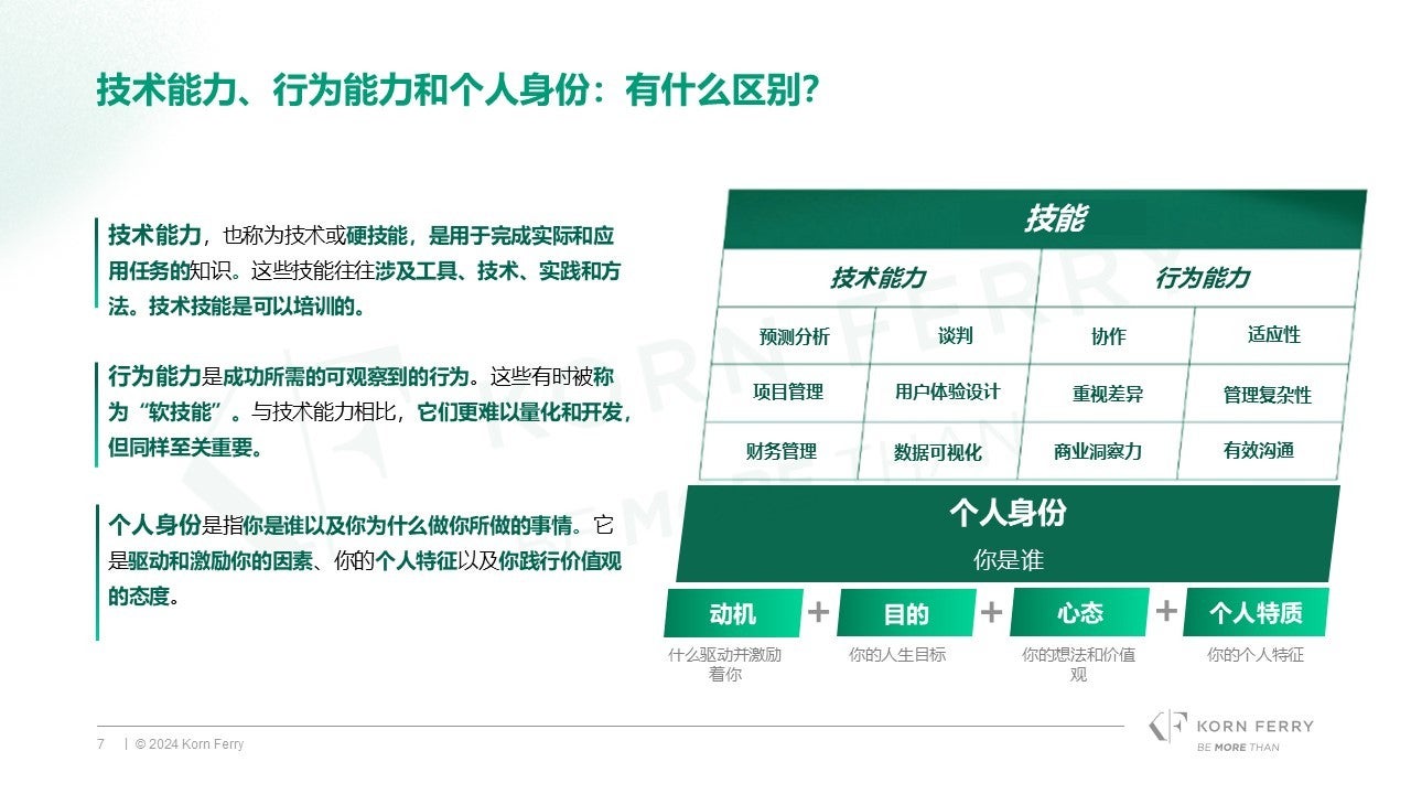 在新的业务挑战与管理情境下,我们建议组织要更全面地理解技能,把员工看作“完整的人”:不仅要看到技术能力和行为能力,更要看到员工的个人身份。